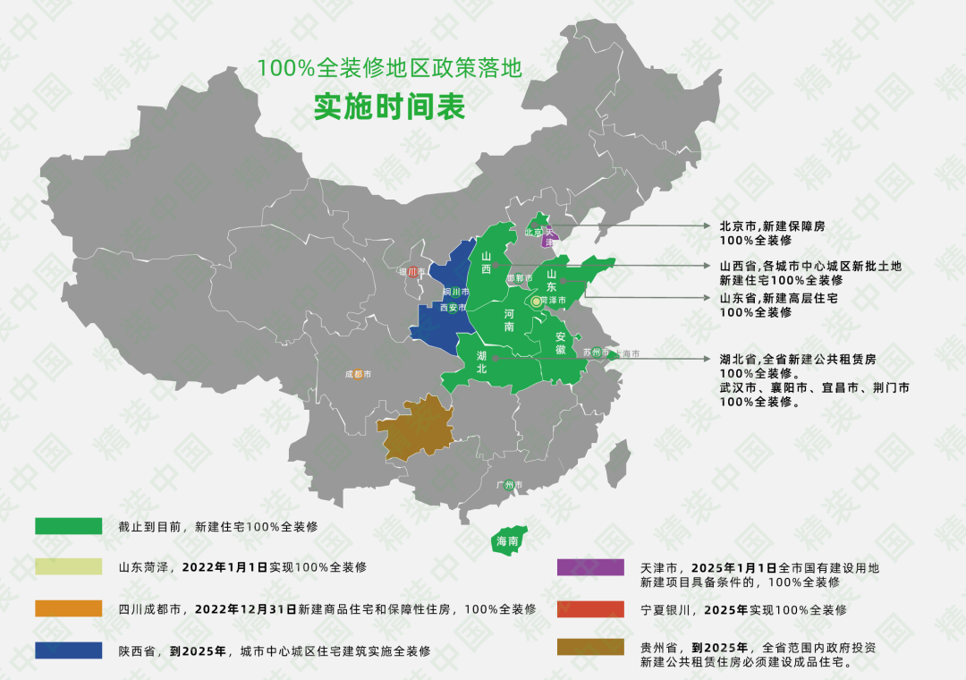 我们看到现在为止的100%全装修地图,陕西从西安和铜川两个试点中积累了经验,并决定再进一步,将在2025年之前在各大城市中心城区全装修全覆盖。